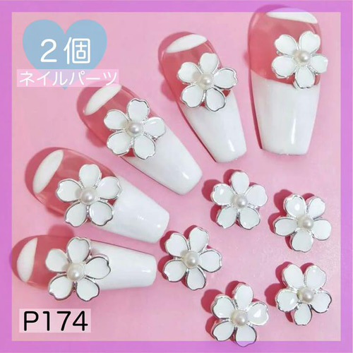 P51 2個 ネイルパーツ 花 フラワー 白 パール 大人可愛い ゴールドの通販 by yusshop♥平日発送ラクマ。