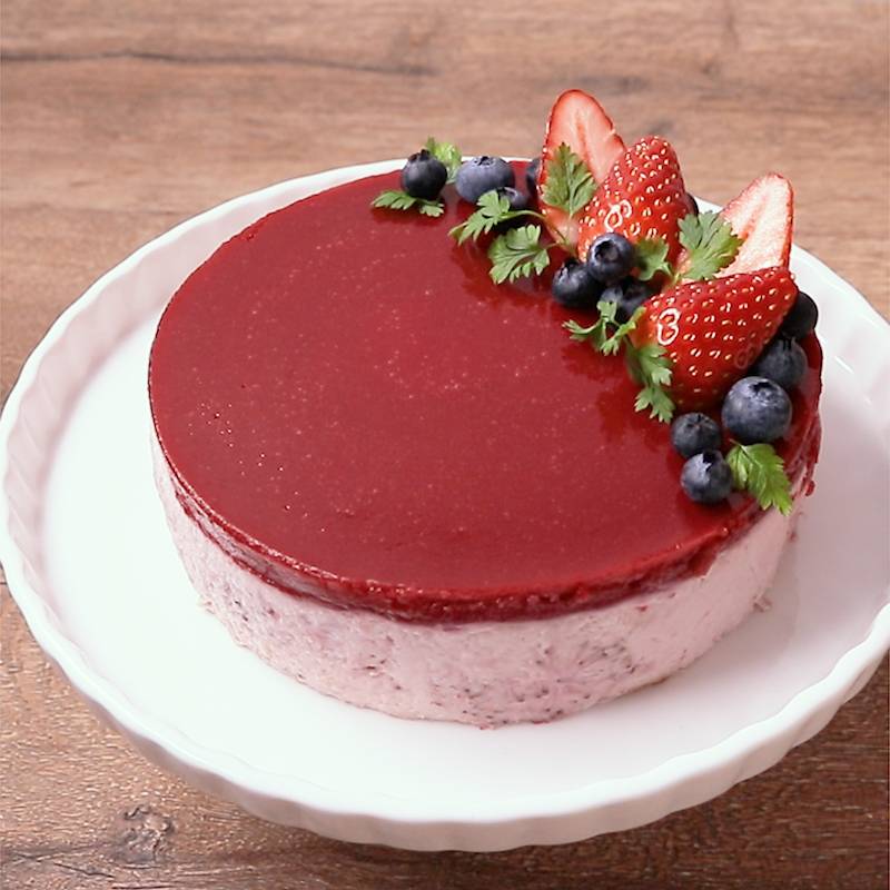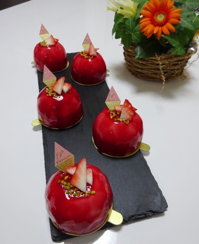 ミラーケーキの作り方。 つやつやな赤グラサージュが美しい。