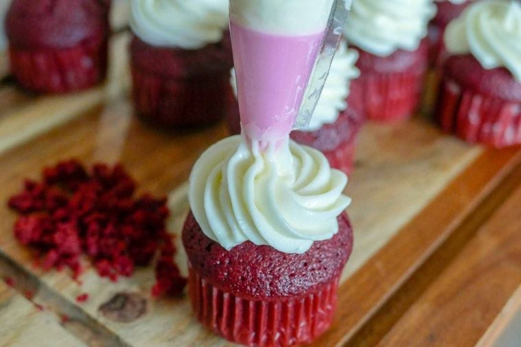 アメリカの定番、真っ赤なレッドベルベットカップケーキの作り方。バレンタインにピッタリ Red velvet cupcakes。