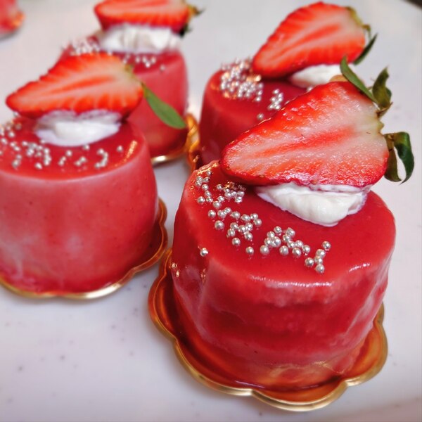 見た目も可愛い♪ レッドベルベットミニケーキ。