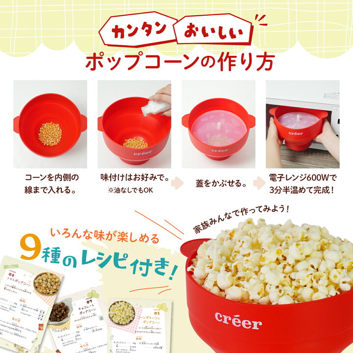 楽天市場楽しいレシピ付き♪ ポップコーンメーカー シリコン製 電子レンジ 家庭用 ノンオイル 洗えるタイプ レシピ付き 簡単調理 調理器具レンジ調理 ポップコーンマシン 自宅 リシコン アレンジ : atRise アットライズ。