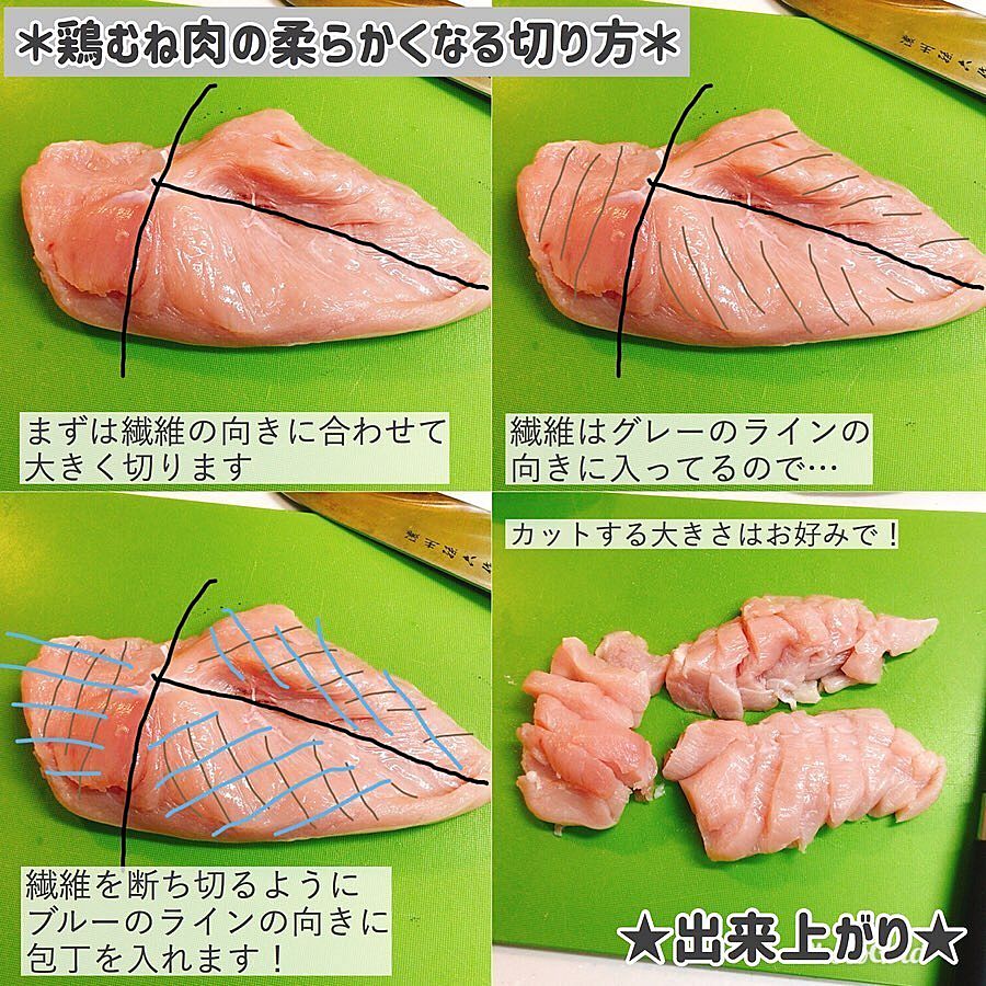 繊維の切り方を工夫するだけ!鶏むね肉が柔らかくなる切り方 家事えもん凡人主婦の暮らしメモ。