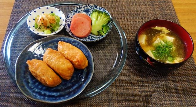 W炭水化物断念したけど豆腐ともずくのお味噌汁うまうま☆稲荷寿司♪☆♪☆♪ : 水は方円の器に随うⅢ。