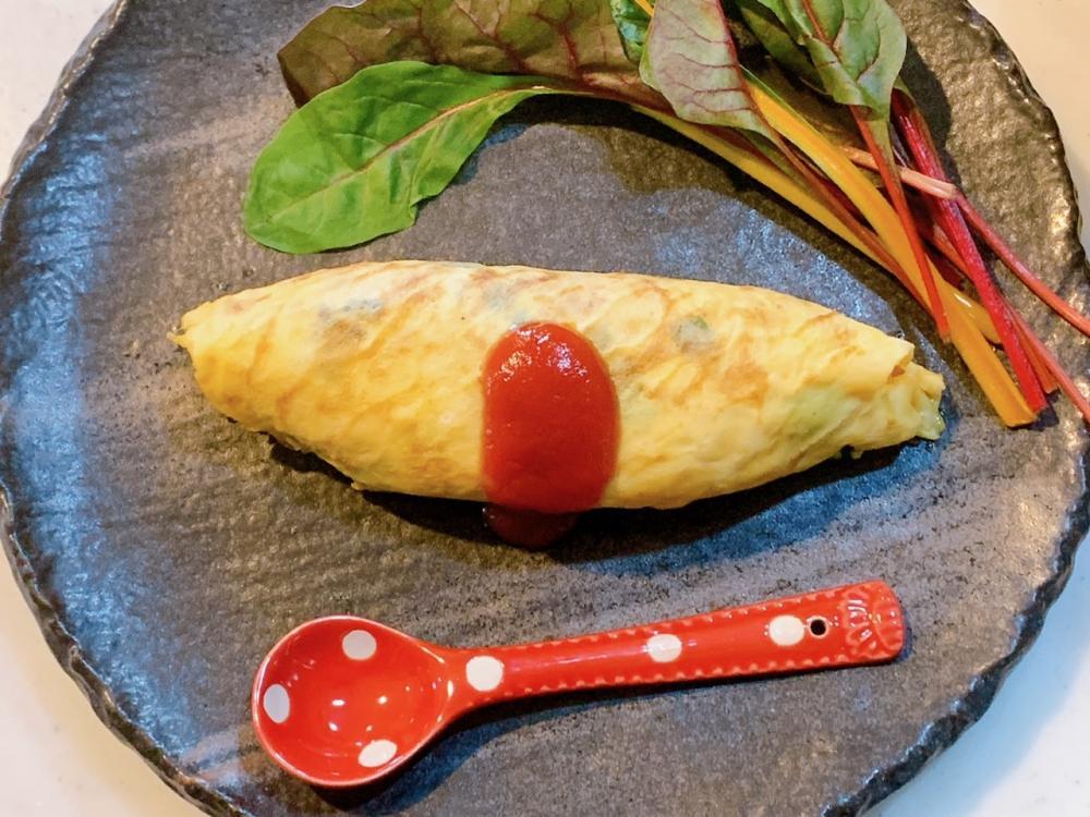 絵本に出てきそうな綺麗なオムライス。濃いめのケチャップにオムライスが合う!オムの細道亀戸グルメオムライスJapanesefoodomletkameido。