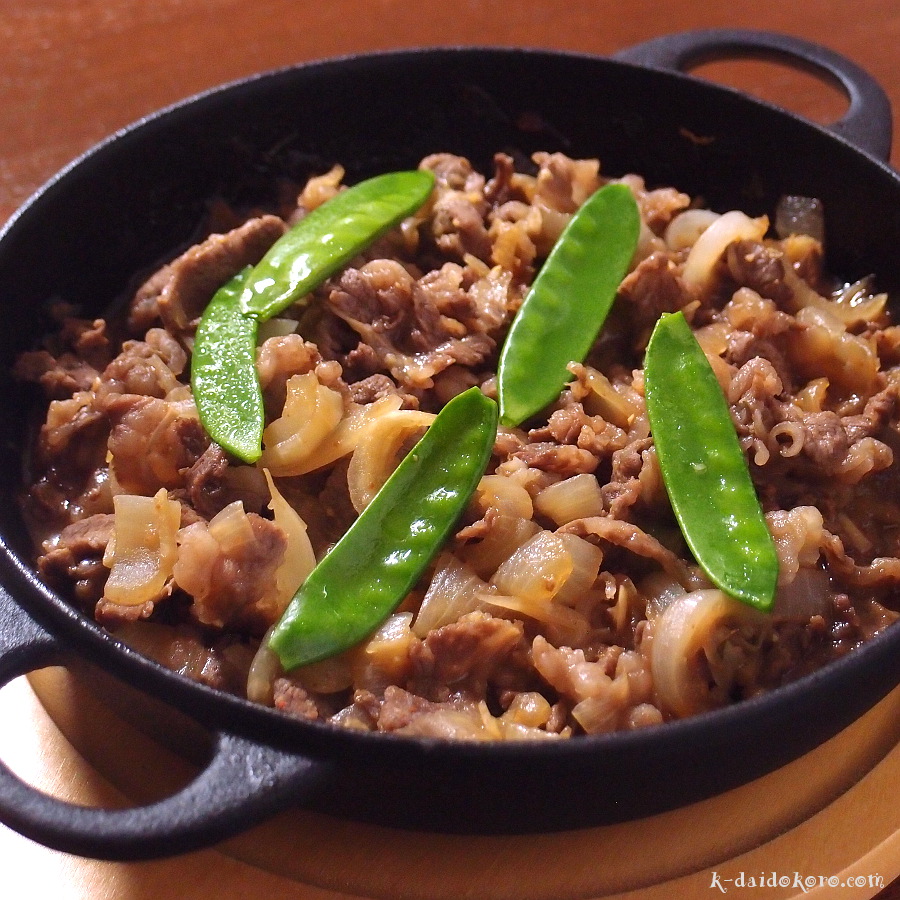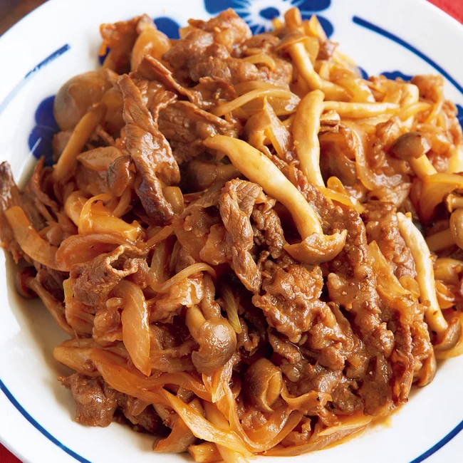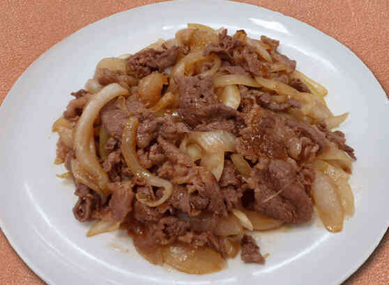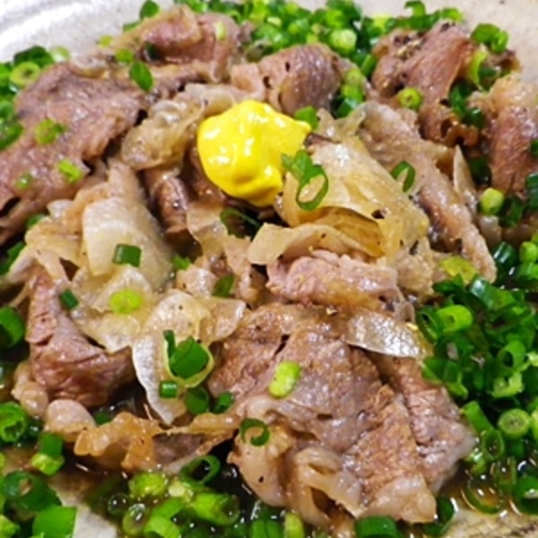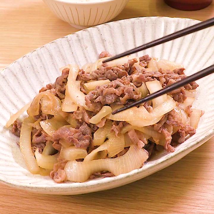 ごはんがすすむ! 牛切り落とし肉と玉ねぎのバラ焼き風。