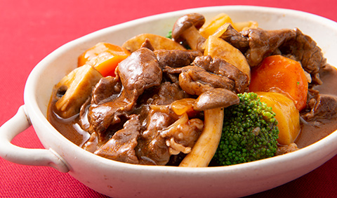 薄切り肉で時短「牛の赤ワイン煮込み」。