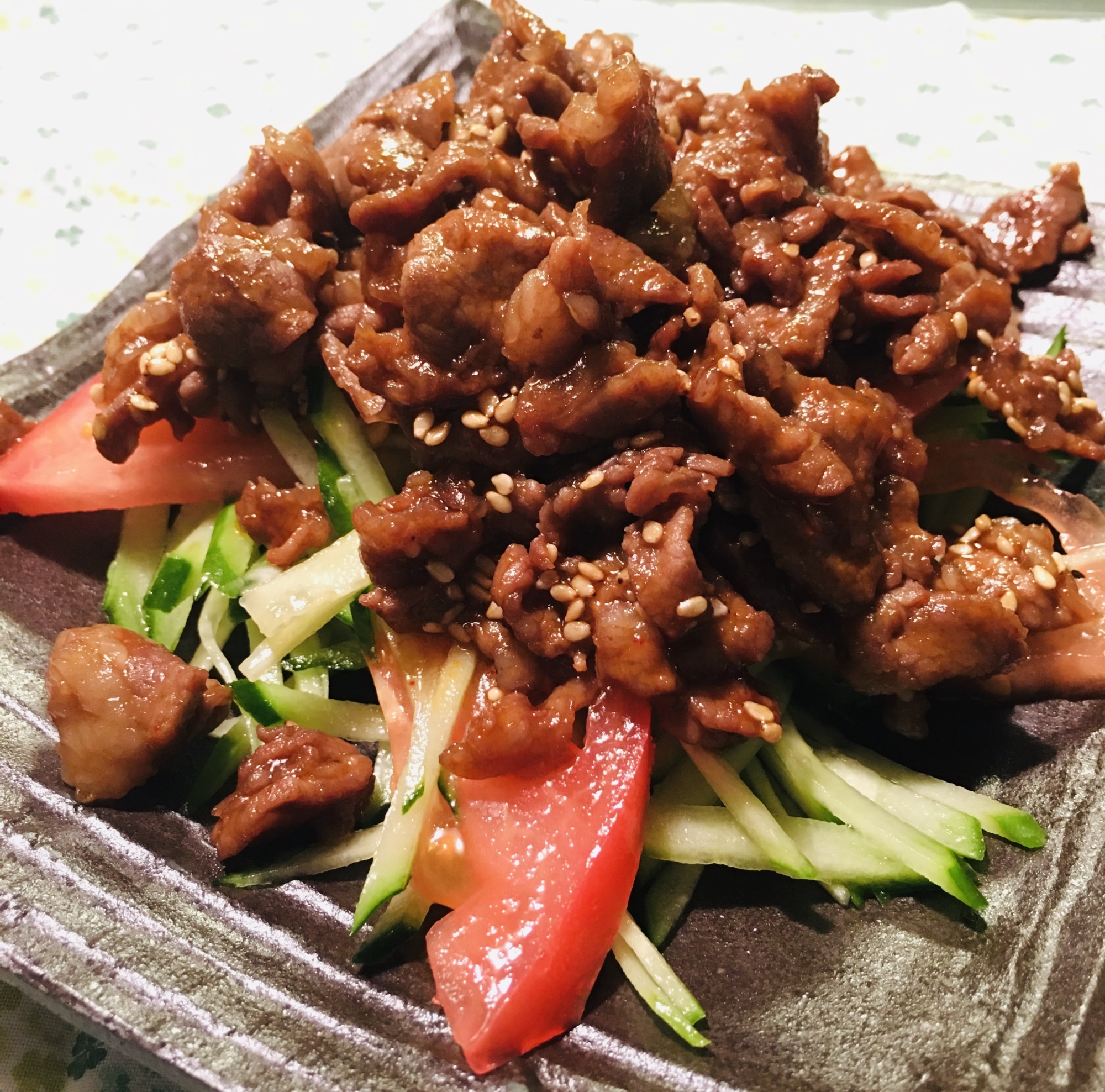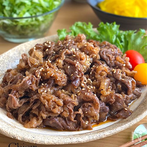 簡単ご飯が進む♪牛バラ肉と玉ねぎの焼肉たれ炒め♡。