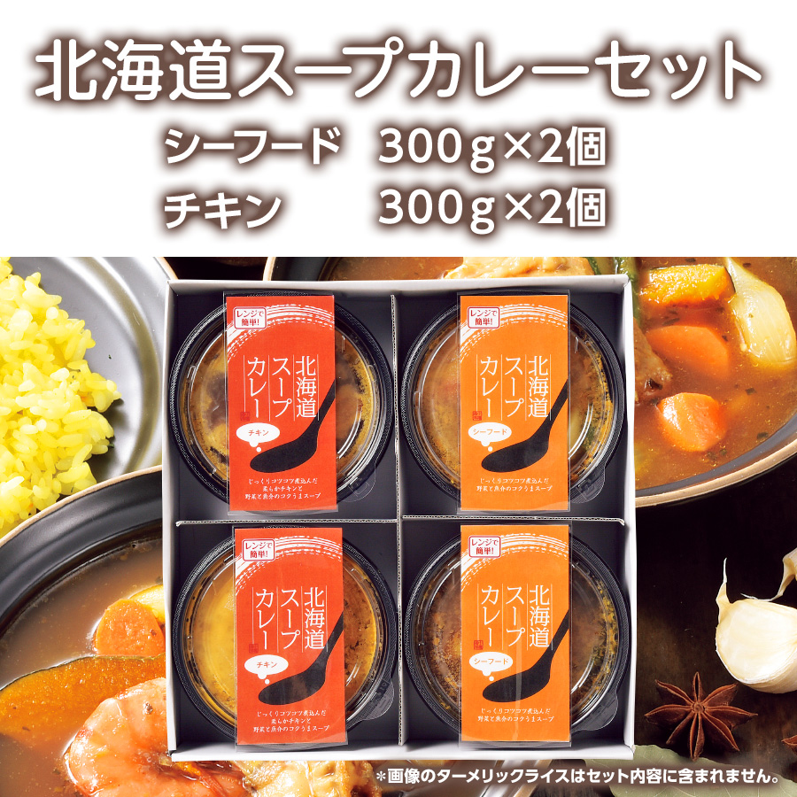 楽天市場 ゴロッと具材入り スープカレー 冷凍 4食セット 容器のまま レンジで温めるだけ 本場北海道の味を楽しめる シーフード チキン スープカレー各2個 カレー ギフト お返し ご飯のお供送料無料: 北海道の美食逸品 イランカラプテ。