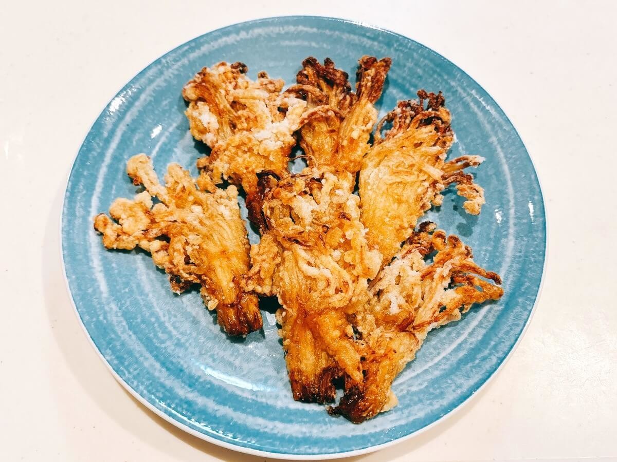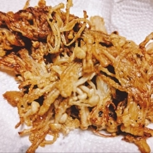 えのき唐揚げ3種 揚げ焼きでバリバリ!めちゃくちゃ美味しい。