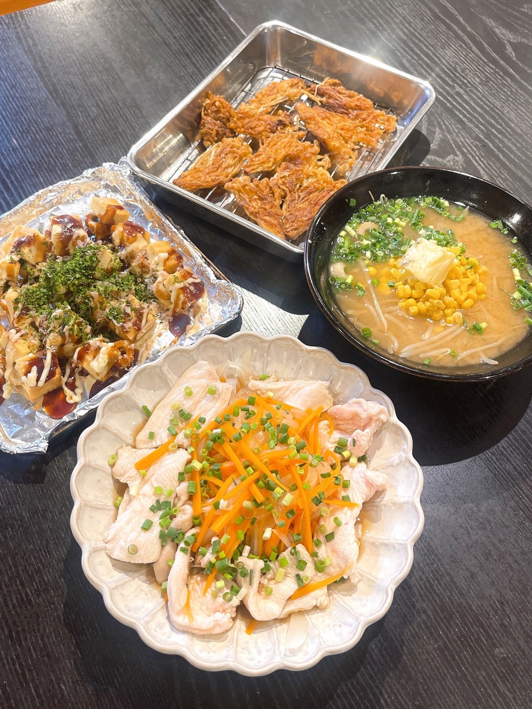 おうちごはん🏠🍚✩.*˚ ☆ふりかけごはん ☆白菜と豚肉のうま塩スープ ☆鱈と蓮根の唐揚げ ☆えのきポン酢 ☆たぬき冷奴 ☆チキンサラダ ☆いちご* スーパー行くと鱈が安いから🐟最近よく買う🤍 クセもないし食べやすいよね!✨️ 唐揚げにするとふわっふわで最高で。