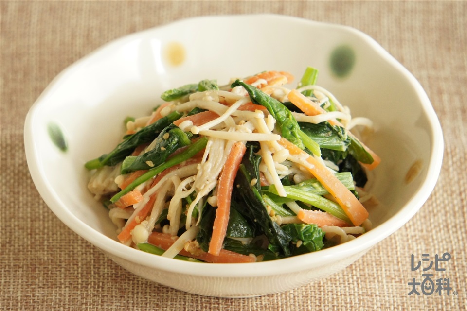 だし唐揚げの献立 副菜:ほうれん草とえのきのマヨごまあえ、汁物:水菜と油揚げのみそ汁 献立・メニュー 味の素パーク たべる楽しさを、もっと。