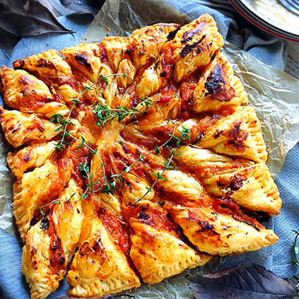 冷凍パイシートで簡単♪大人の惣菜パイ『焼きトマトとブルーチーズのパイ』のレシピ・作り方 - ちょこっと学べるレシピサイト『なるほど食堂』。