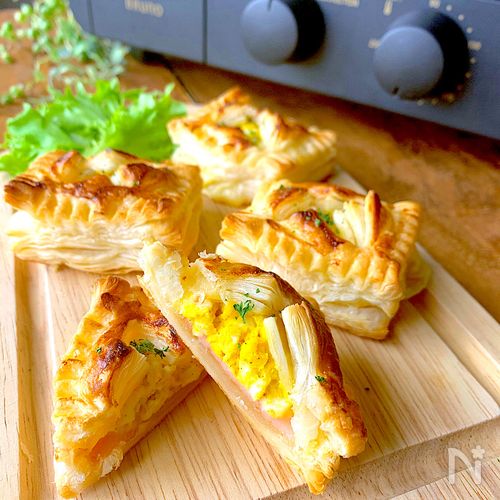 トースターで簡単おいしい♡ひとくちハムチーズたまごパイ。