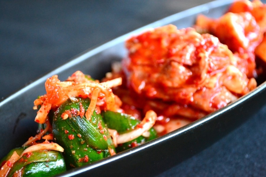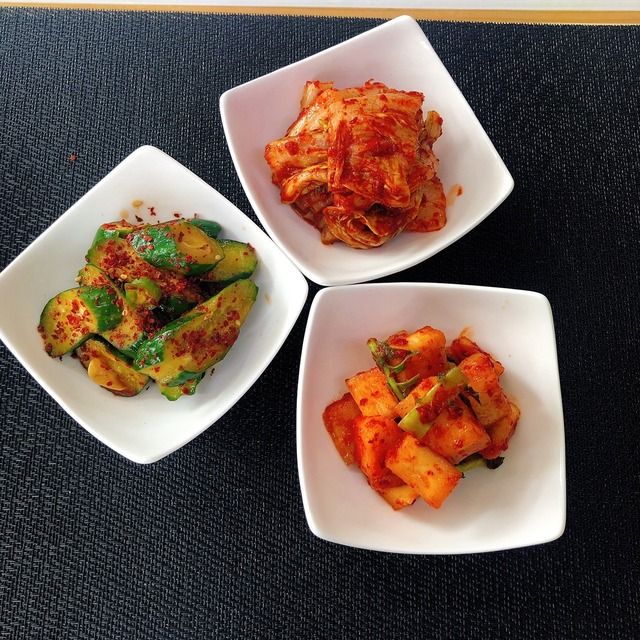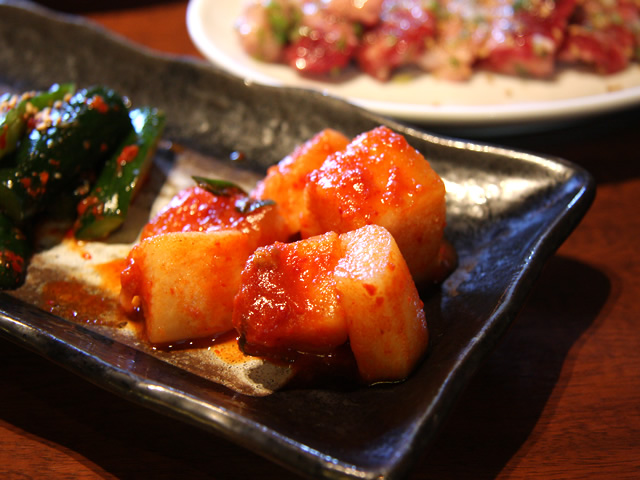 キムチ盛り合わせ カクテキ、オイキムチ。