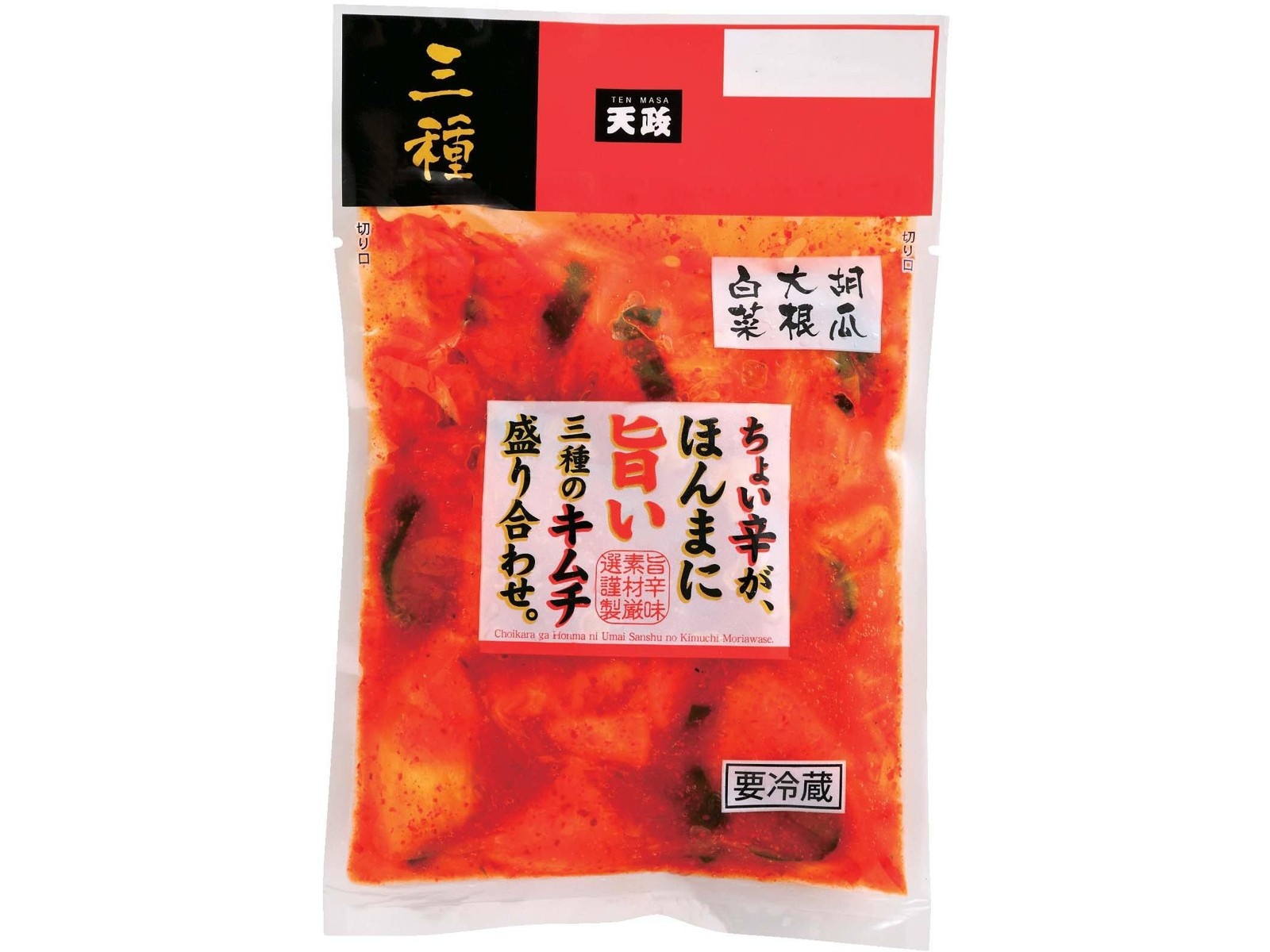 ちょい辛がほんまに旨い三種のキムチ盛り合わせ。180gちょい辛キムチ 天政。
