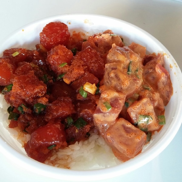 ハワイの アヒポキ スパイシーマヨツナポキ丼。