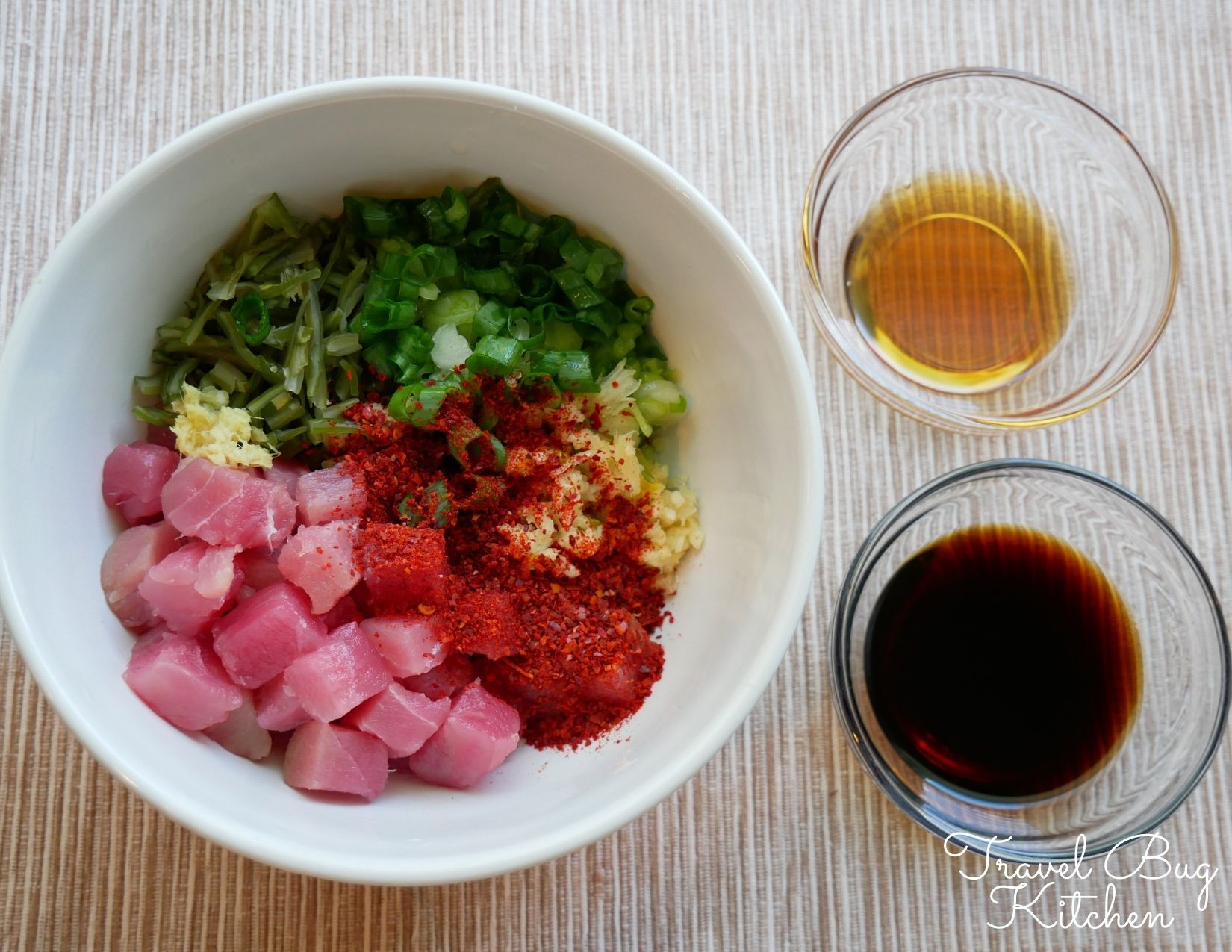 Spicy Poke Bowl - スパイシーポキ丼 - Travel Bug Kitchen。
