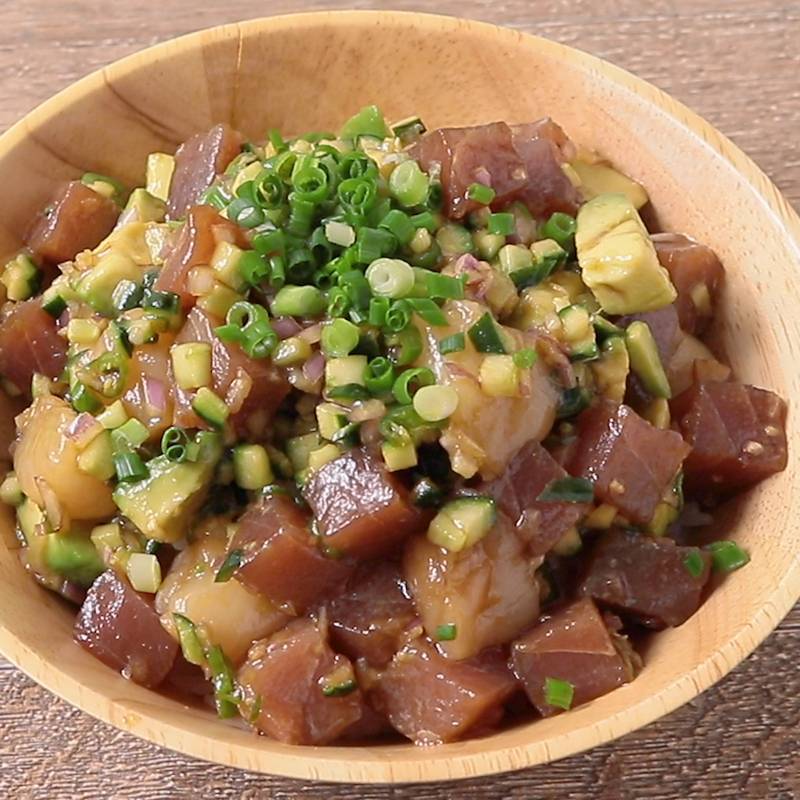 本場ハワイの味を再現!マグロとタコのポキ丼 ポケ丼 の作り方。