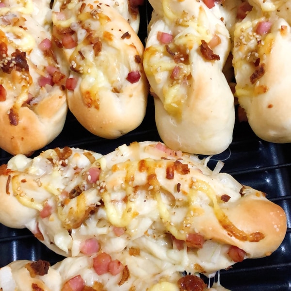 フライドオニオン入りのベーコンツイストパン。