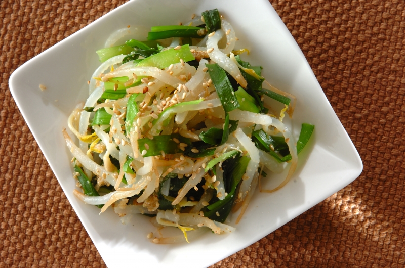 レンジで手軽に!大豆もやしのナムルのレシピ 作り方:白ごはん.com。