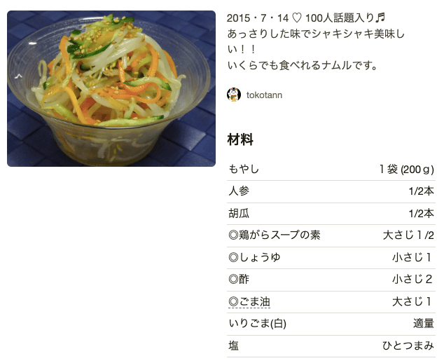 もやしのナムルレシピ人気1位はコレ! つくれぽ殿堂入り最新人気ランキングTOP30!レシピランキングネット。