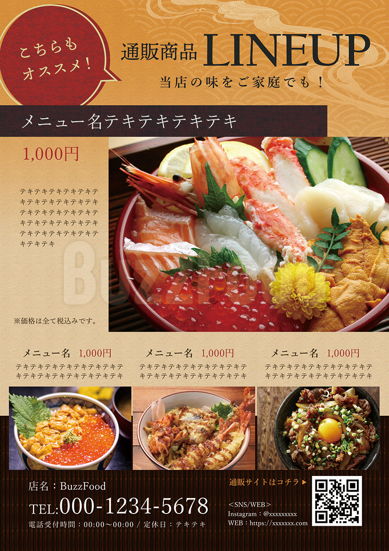 和食ポップ 居酒屋・和食店にオススメ 和柄カラー:金色店舗情報入り- BuzzFood。