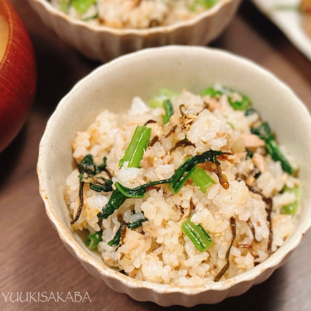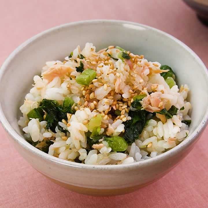 小松菜とツナの混ぜご飯奥薗壽子のなべかまぺえじ。