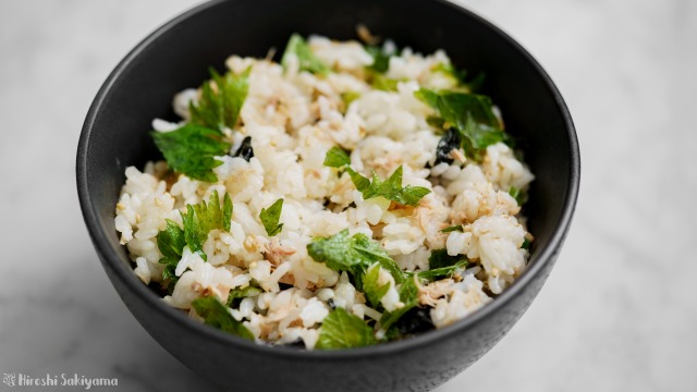 三つ葉風味・キヌアとツナの塩昆布の混ぜご飯。