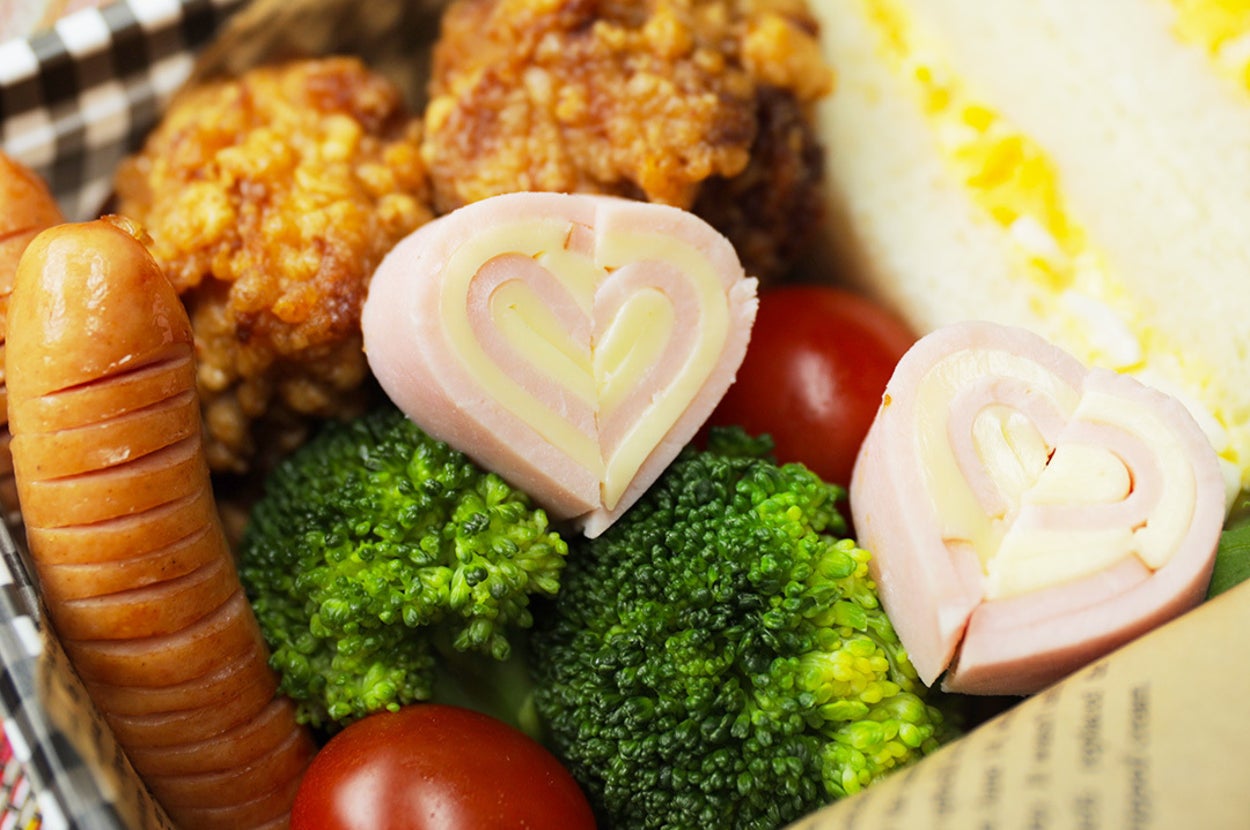 型がなくても簡単にできる「ハートのハムチーズ」。春らしくて“かわいいお弁当おかず”。