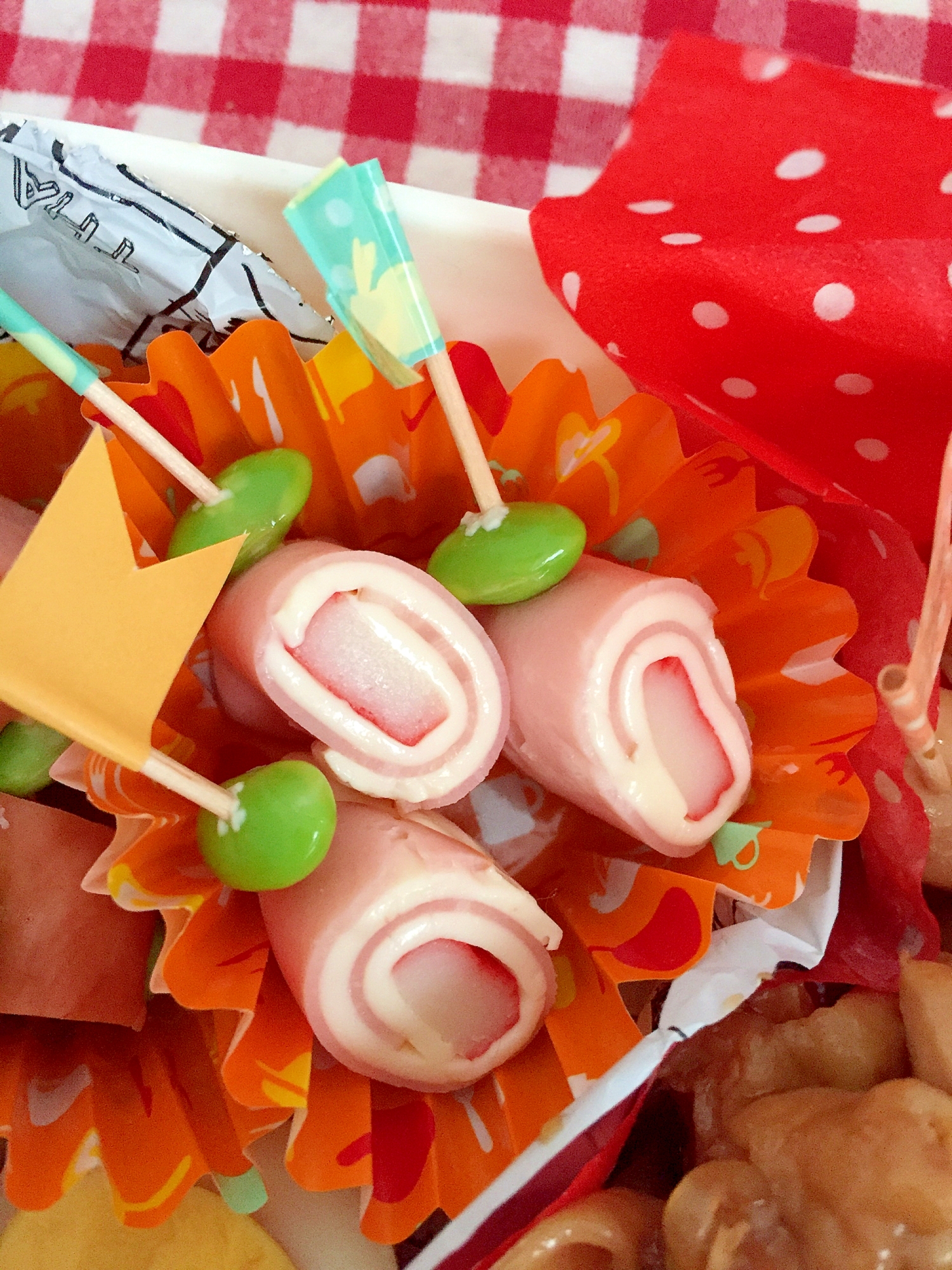 お弁当♪ハムチーズのぐるぐるキャンディ。