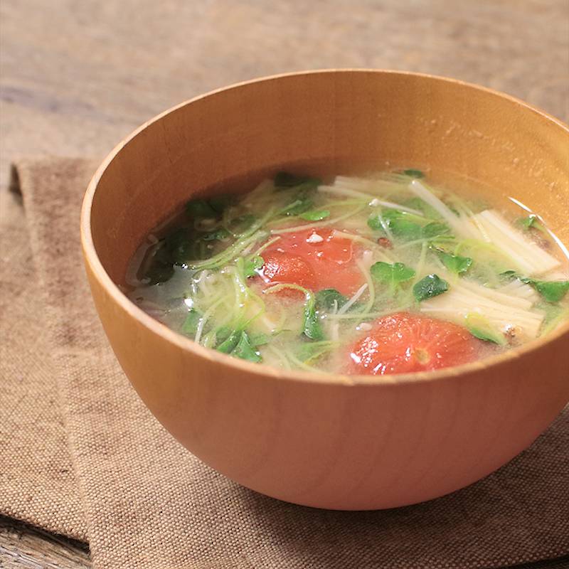 かいわれ大根と卵の味噌汁 平日の時短ごはんレシピゆり子のおいしい暮らし。