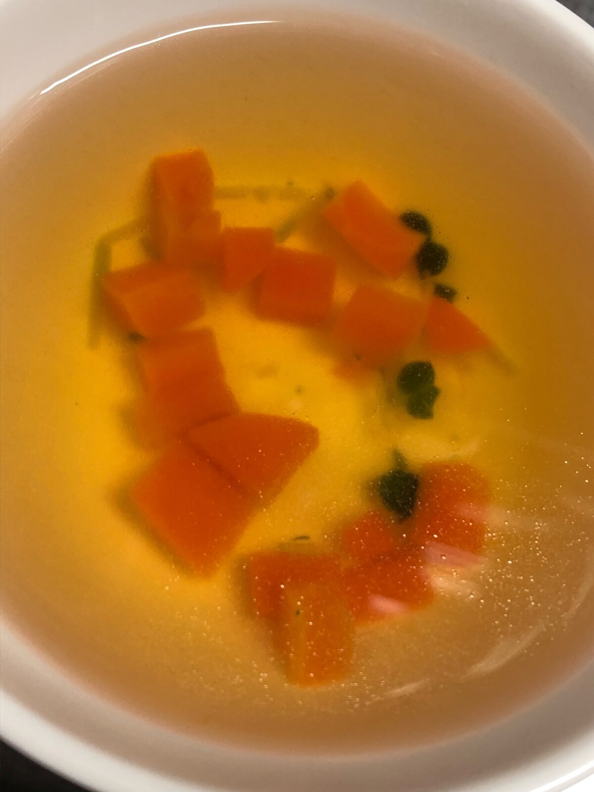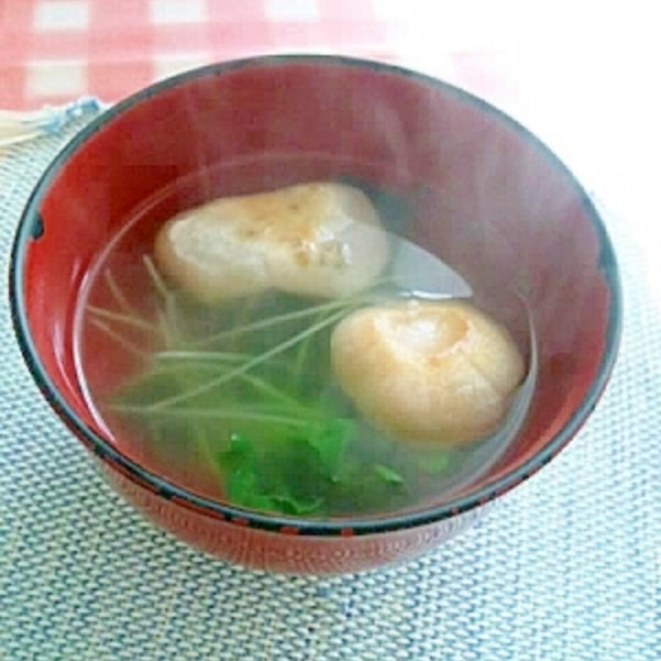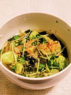 レンジで★かいわれ大根とはんぺんとハムの和風スープ。