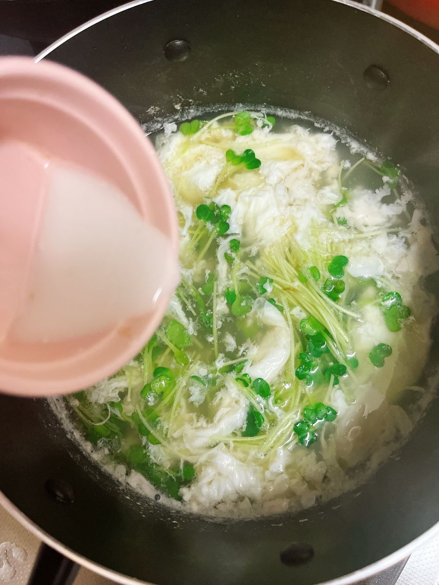 ふわとろ~椎茸とカイワレ大根!かき玉汁。