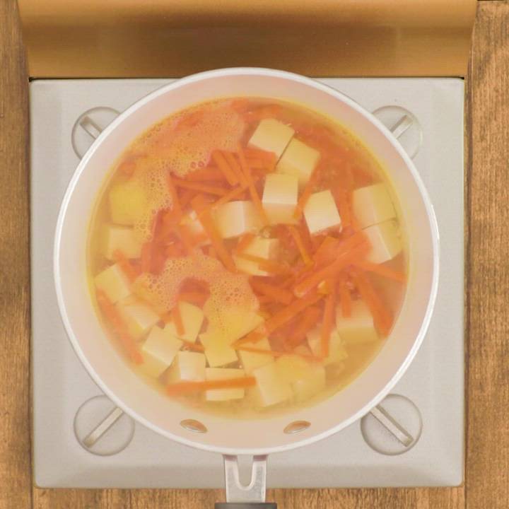 忙しい時におすすめ! かいわれと豆腐のスープ。