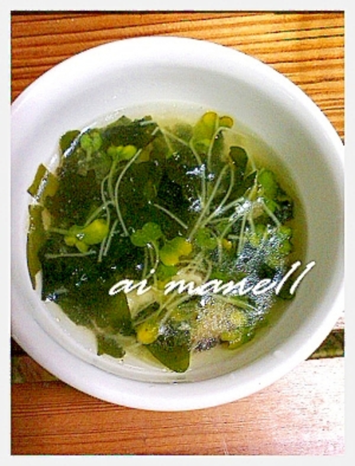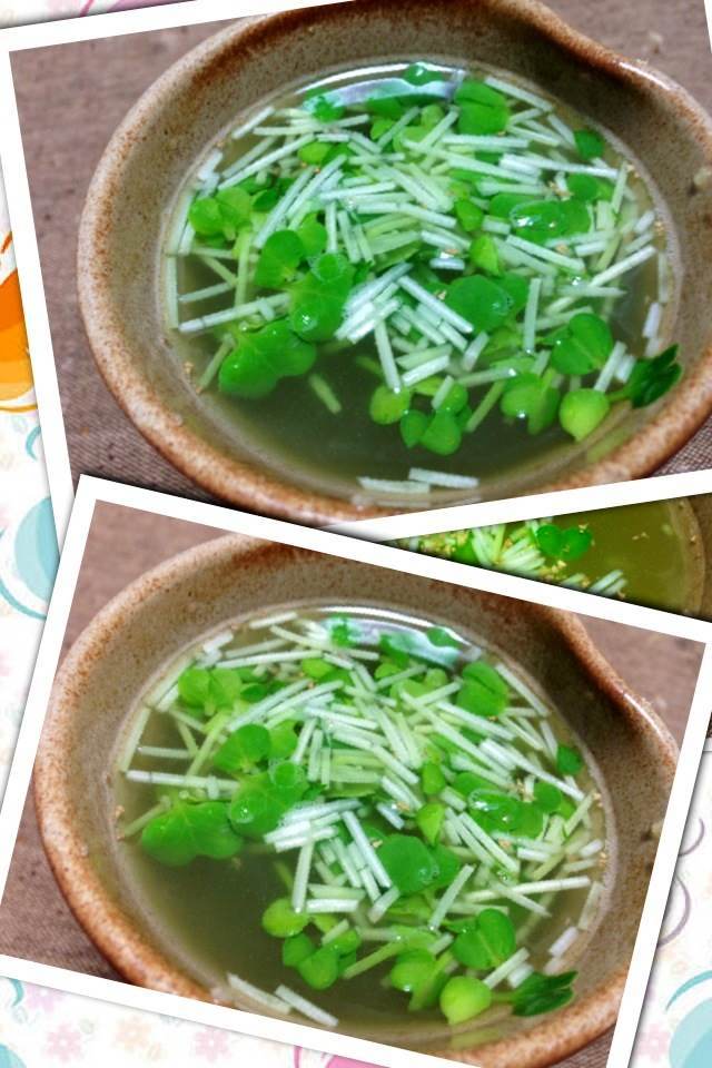 牛・鶏ダブルだし!かいわれ大根の簡単スープ♪。