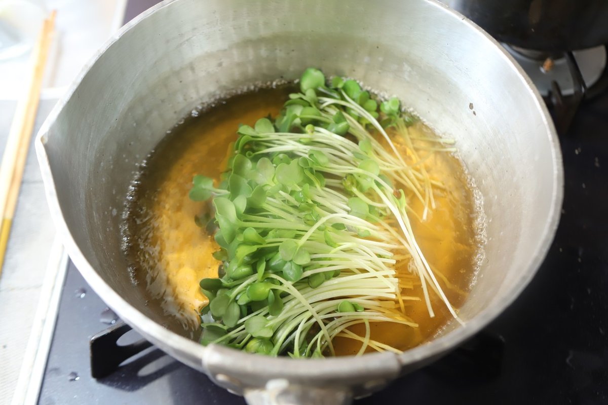 氷でおいしくなる かいわれ大根の煮浸し 樋口直哉 TravelingFoodLab.。