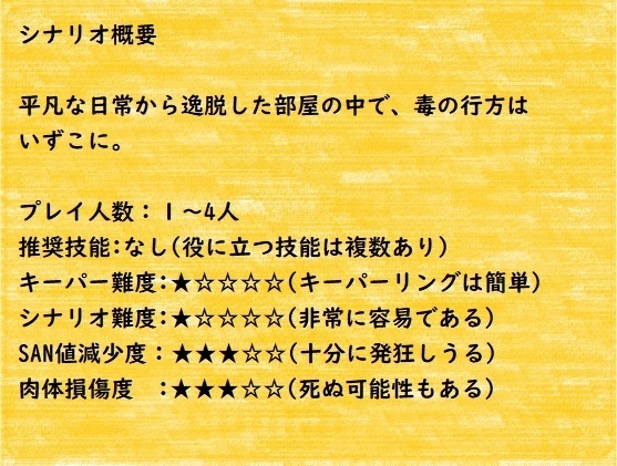 クトゥルフ神話TRPGシナリオ『毒入りみそスープ』 - ameno-sagiri - BOOTH。