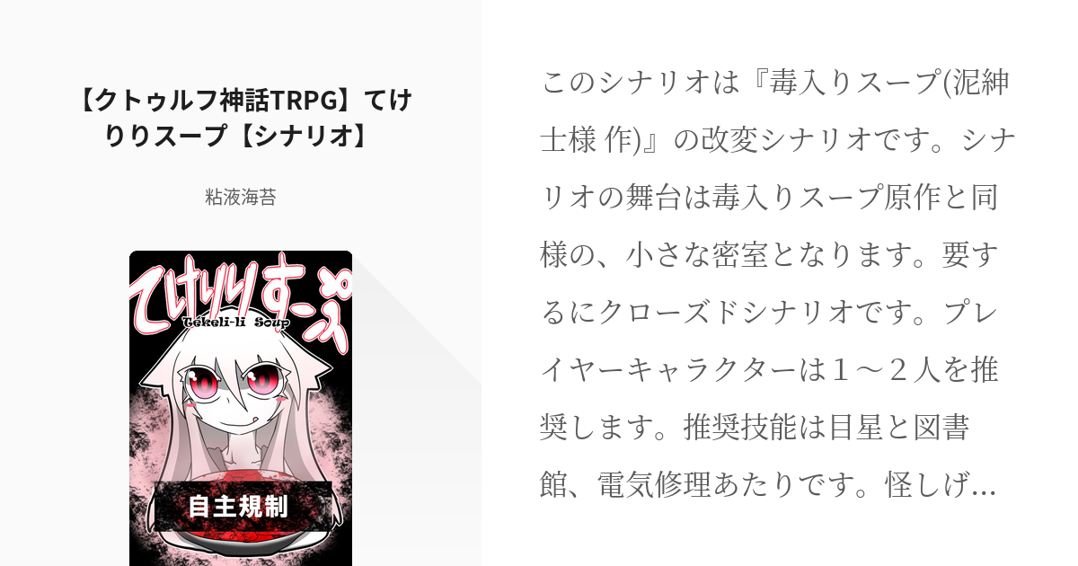 1CoCシナリオ 毒入りスープから始まるクトゥルフ生活毒入りスープから始まるクトゥルフ生活 - pixiv。