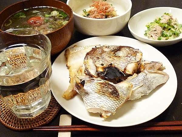 鯛は塩焼きが一番うまいのである。おっさんひとりめし。