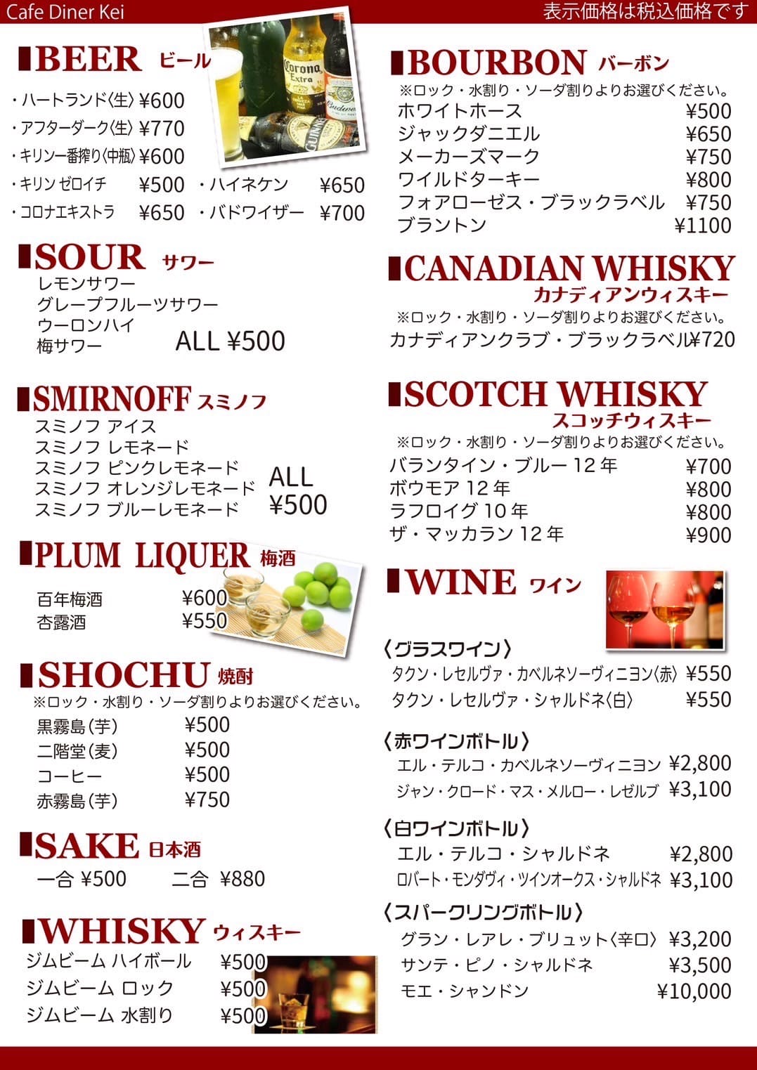 ドリンクメニュー紹介カフェ ダイナー ケイ 水戸市の「みと楽横丁」にあるアメリカンダイナ。
