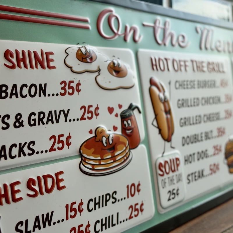 アメリカン ダイナー サインボード 看板 メニュー表 ビンテージ。