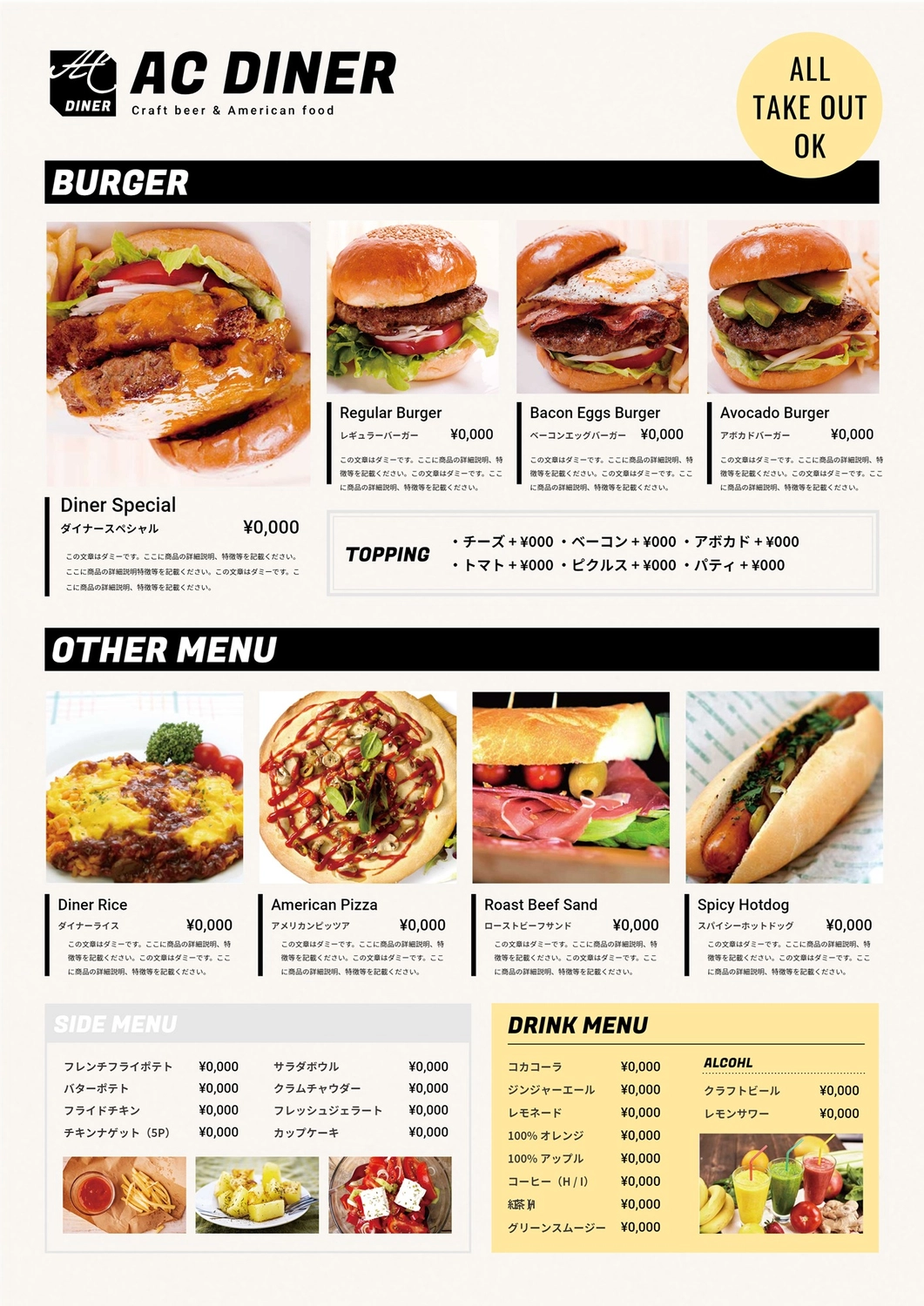 アメリカンなダイナー向けメニュー表の無料メニューテンプレート 12841 - デザインAC。