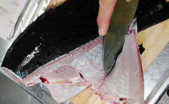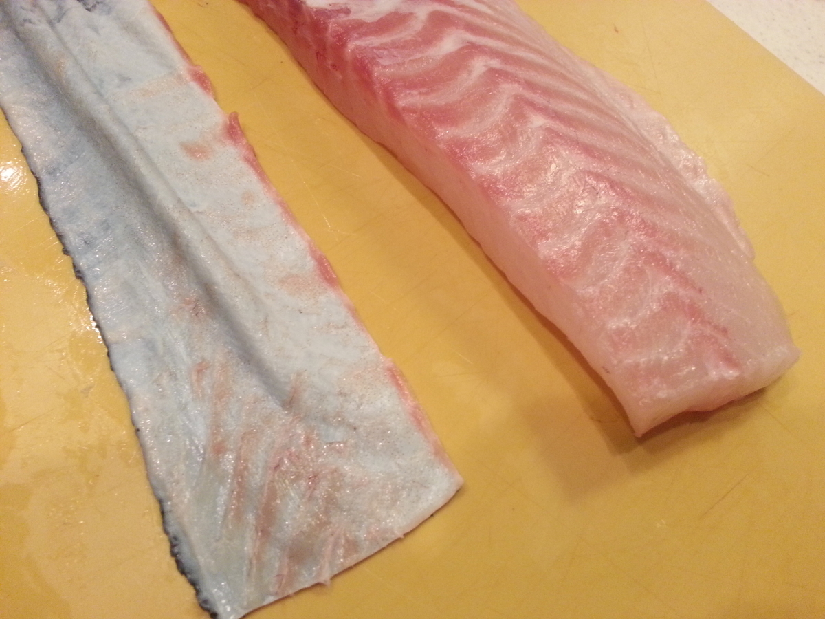 イシダイ 石鯛 のおろし方 3腹骨、血合い、皮を取る- 魚料理と簡単レシピ。