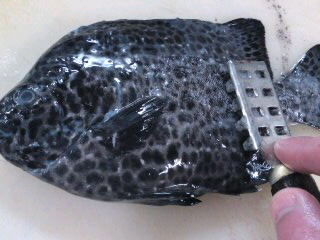 イシダイ 石鯛 のおろし方 1 ウロコ、エラ、ワタを取ります。 - 魚料理と簡単レシピ。