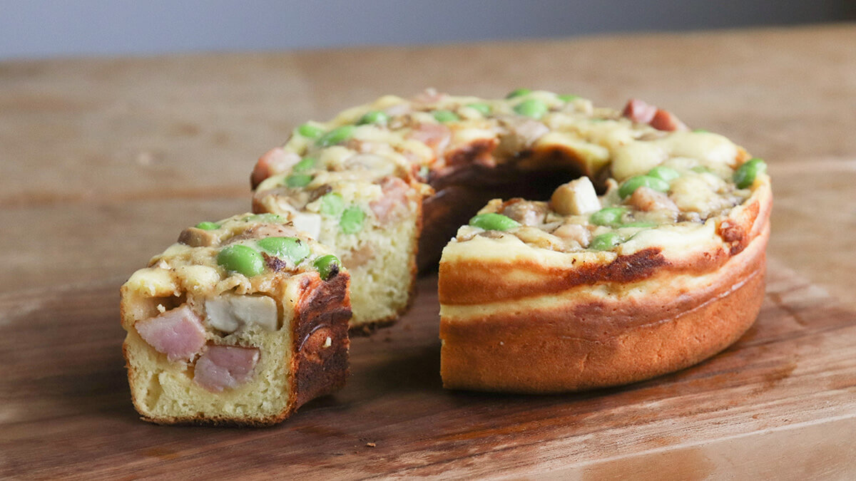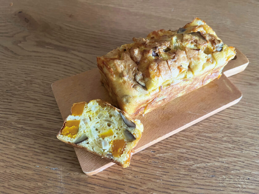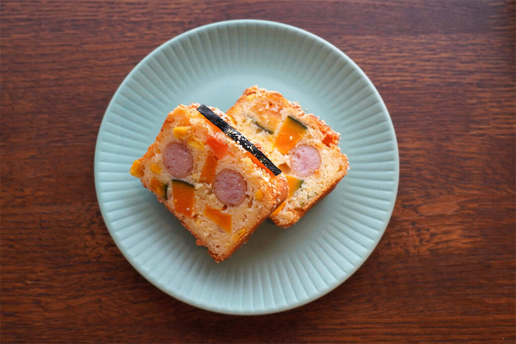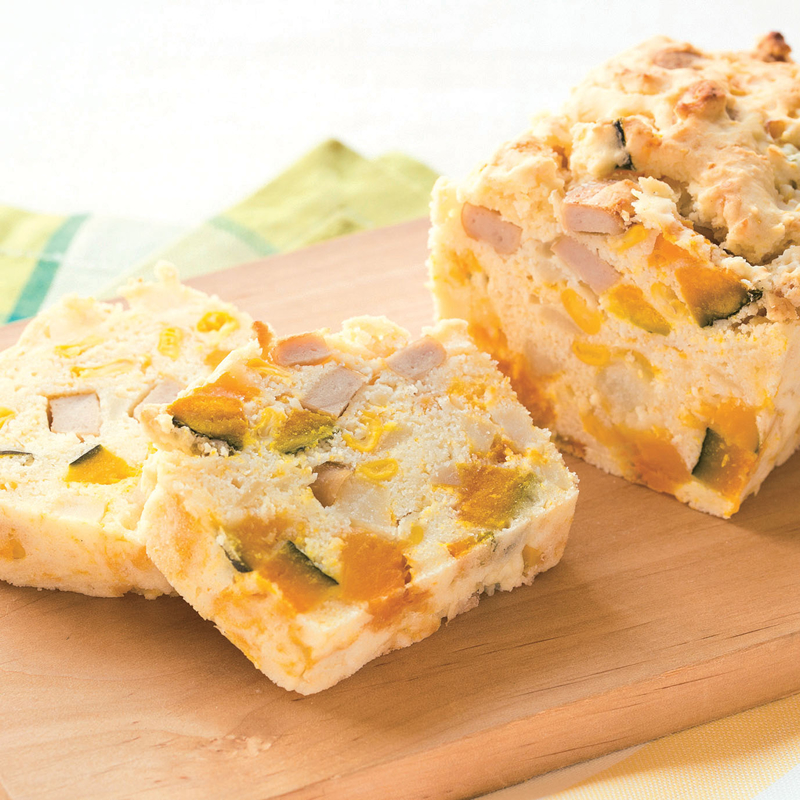 豆乳シュレッドとベーコンの米粉ケークサレ。