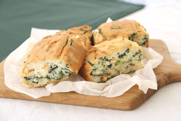 ふわもちおかずケーキ♪ サーモンとほうれん草の米粉ケークサレ。