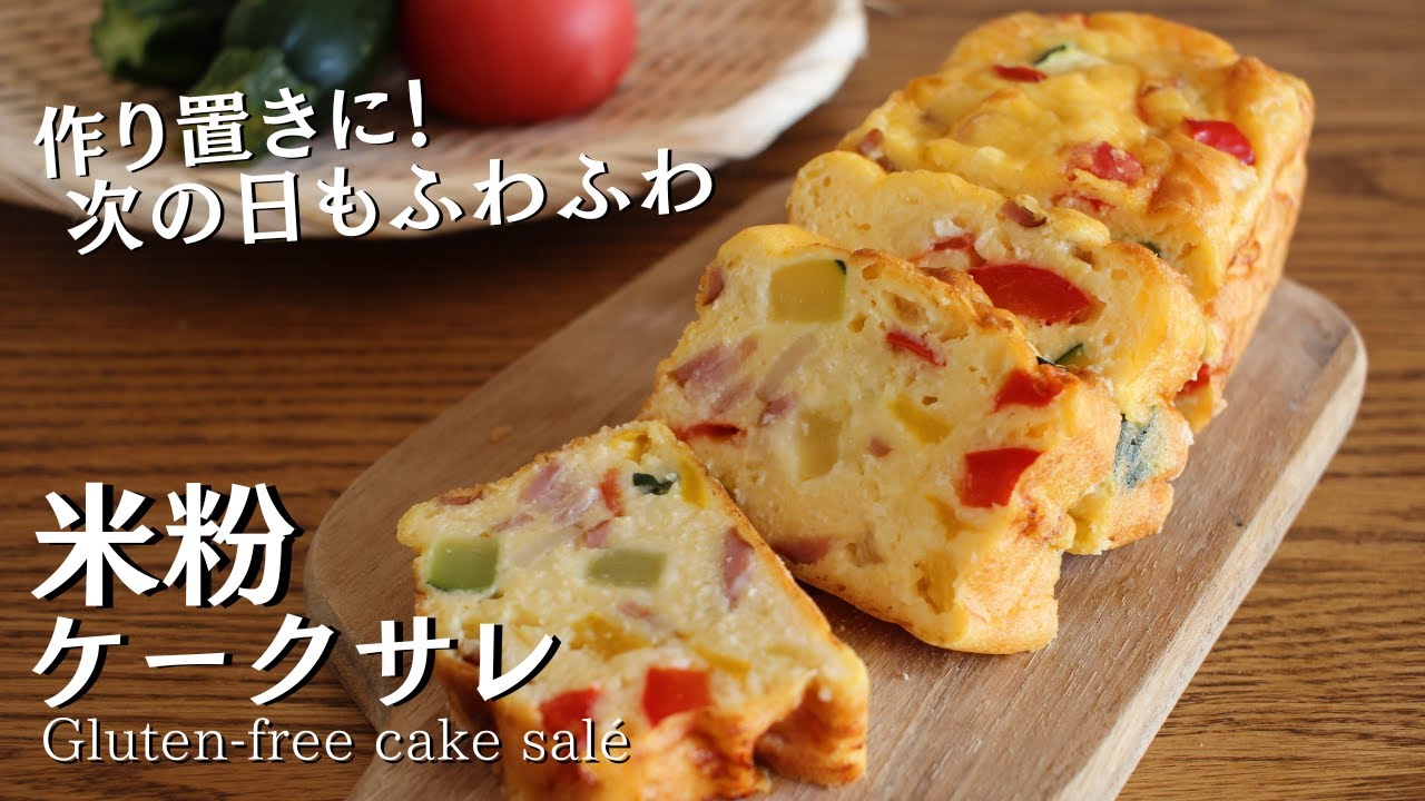 焼くまで5分で作れる 米粉お食事パン 混ぜて焼くだけ!簡単グルテンフリー米粉ケークサレが簡単美味しい♡Rice flour cake - YouTube。