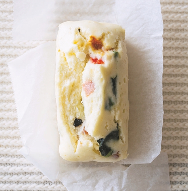 卵や乳製品は不使用!蒸して作るお手軽お惣菜ケーキ「蒸しケークサレ」レシピ・作り方MY LIFE RECIPE。