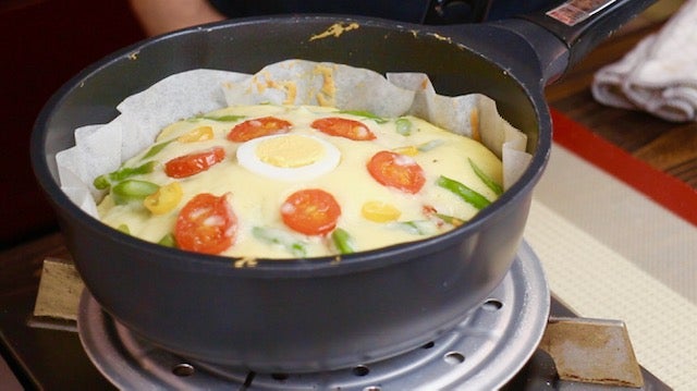 フライパンで簡単春キャベツと具沢山の米粉ケークサレ。