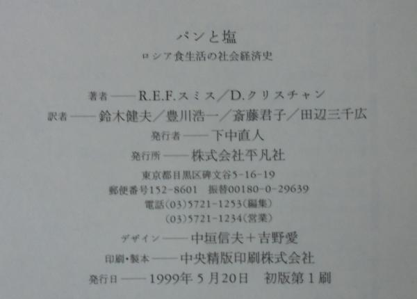 パンと塩 ロシア食生活の社会経済史 R.E.F.スミス D.クリスチャン 鈴木健夫 他 訳古本、中古本、古書籍の通販は「日本の古本屋」日本の古本屋。